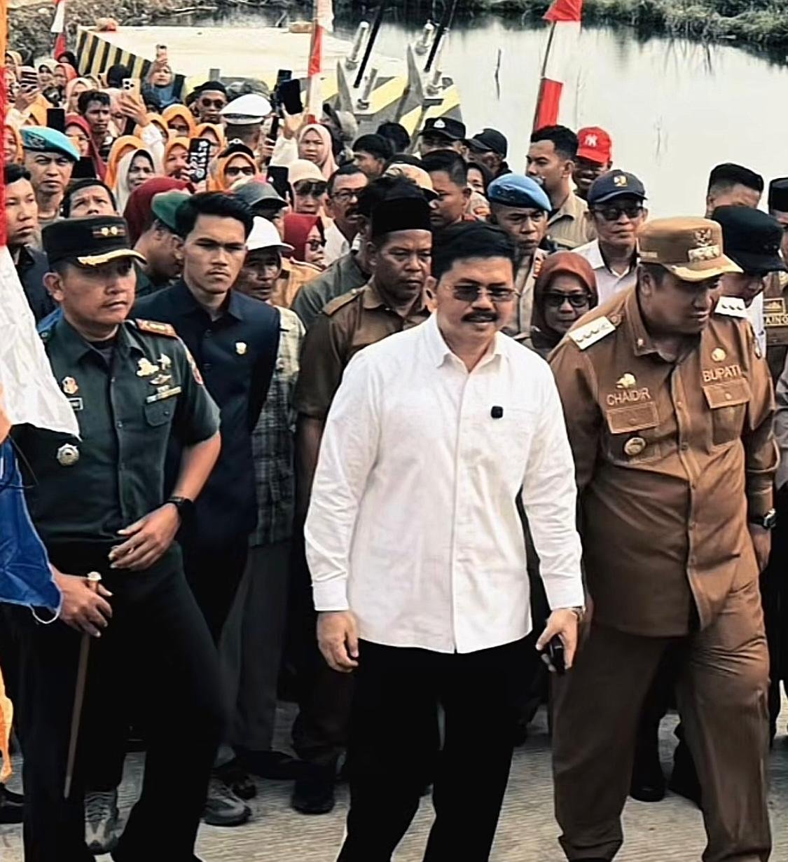 Kehadiran para pimpinan daerah bersama wakil rakyat menunjukkan sinergi nyata dalam menjawab kebutuhan infrastruktur desa. Bupati Chaidir Syam dalam sambutannya menekankan pentingnya jembatan ini bagi kelancaran mobilitas warga. Ia juga mengapresiasi peran semua pihak yang telah bekerja keras sehingga pembangunan ini dapat terealisasi dengan baik.