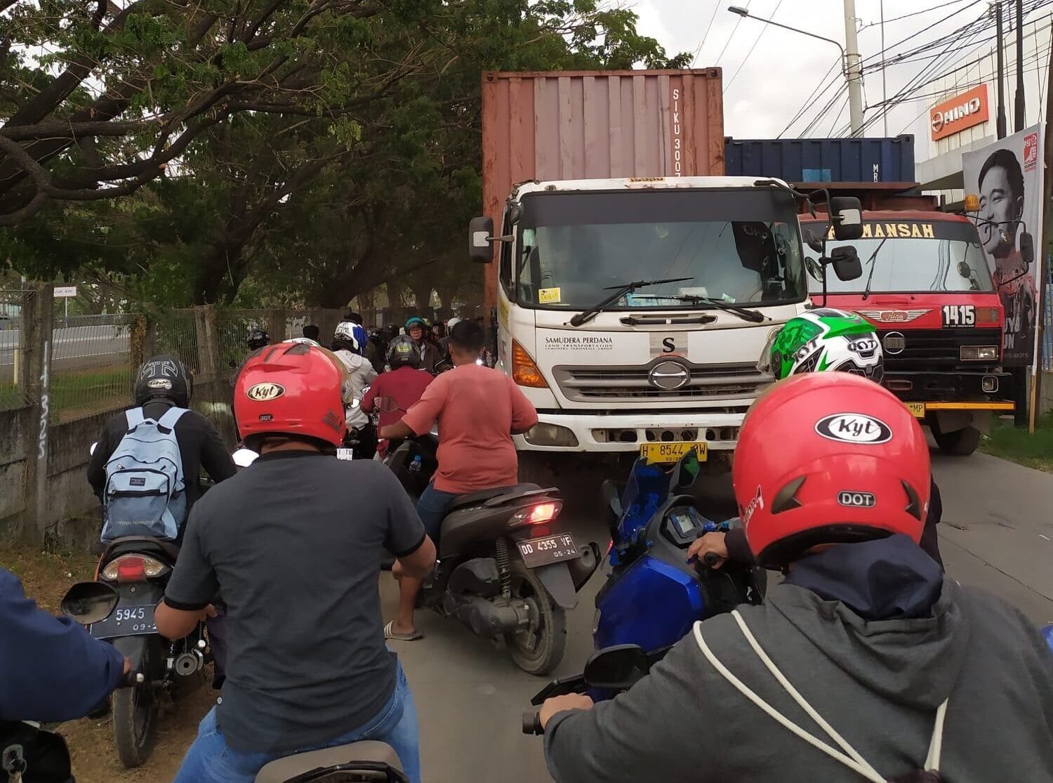 Dampaknya pun mengakibatkan beberapa truk bermuatan harus parkir di Bahu jalan dan mengakibatkan penumpukan kendaraan.