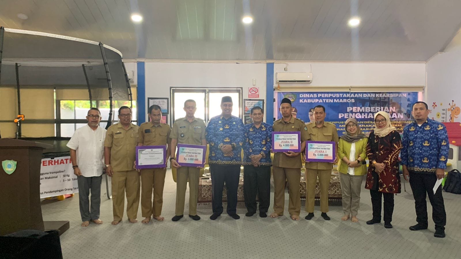 Maros, folderindonesia.com – Pemerintah Daerah melalui Dinas Perpustakaan dan Kearsipan Kabupaten Maros memberikan penghargaan kepada perpustakaan desa yang menerapkan sistem Transformasi Perpustakaan Berbasis Inklusi Sosial (TPBIS) di Perpustakaan ibu dan anak kab. Maros. Senin. (4/12).
