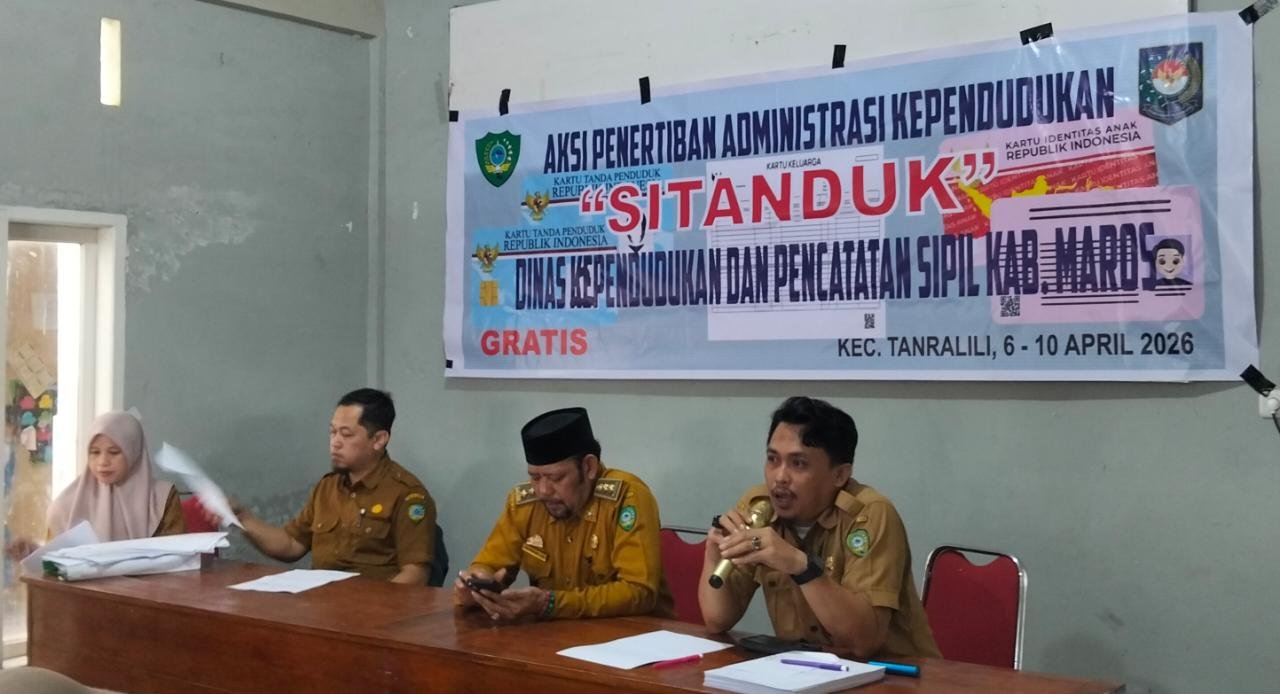 MAROS, FOLDERINDONESIA.COMPemerintah Kabupaten Maros melalui Dinas Kependudukan dan Pencatatan Sipil (Disdukcapil) terus menunjukkan komitmennya dalam meningkatkan tertib administrasi kependudukan melalui pelaksanaan program Aksi Penertiban Administrasi Kependudukan (SITANDUK). Selasa, ( 7/4/2026)