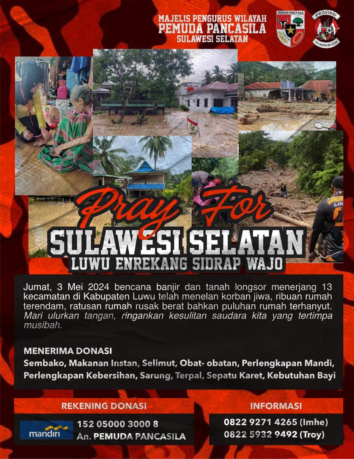 Akibat bencana banjir dan tanah longsor yang menerjang 13 kecamatan Dikabupaten Luwu menyebabkan korban jiwa. Ribuan rumah terendam, ratusan rumah rusak berat bahkan puluhan rumah hanyut terbawa air.