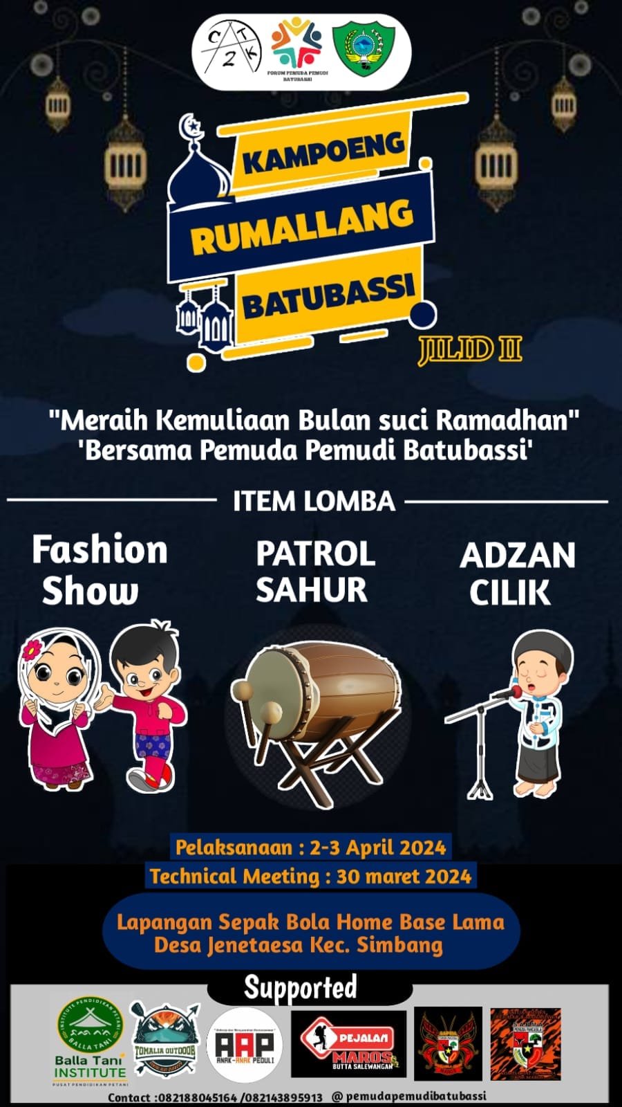 MAROS, FOLDERINDONESIA.COMBeberapa komunitas pemuda di Batubassi desa Jenetesa, kec. Simbang bakal menggelar kembali event ramadhan dengan tagline Kampoeng Rumallang Jilid II.