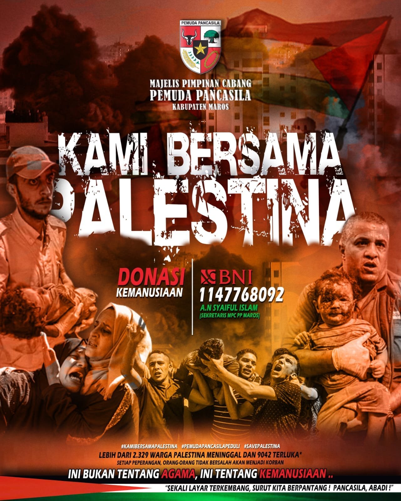 Maros, folderindonesia.com Majelis Pimpinan Cabang (MPC) Pemuda Pancasila Kab. Maros Membuka Donasi untuk Palestina. Bahkan MPC PP Maros Membuka posko di sekretariatnya untuk menggalang dukungan semua masyarakat Maros untuk membela Palestina.