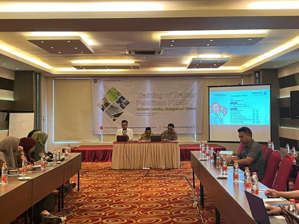 MAKASSAR, FOLDERINDONESIA.COMPelaksana Harian (Plh) Kepala Dinas Komunikasi, Informatika, Statistik, dan Persandian (Diskominfo SP) Sulsel, Sultan Rakib, menjadi narasumber di hari pertama Training of Trainer (ToT) Pelatihan Peningkatan Kapasitas Aparatur Desa (PKAD), yang diselenggarakan Direktorat Jenderal Bina Pemerintahan Desa, di W Three Premier Hotel, Makassar, 28 Oktober – 1 November 2024.
