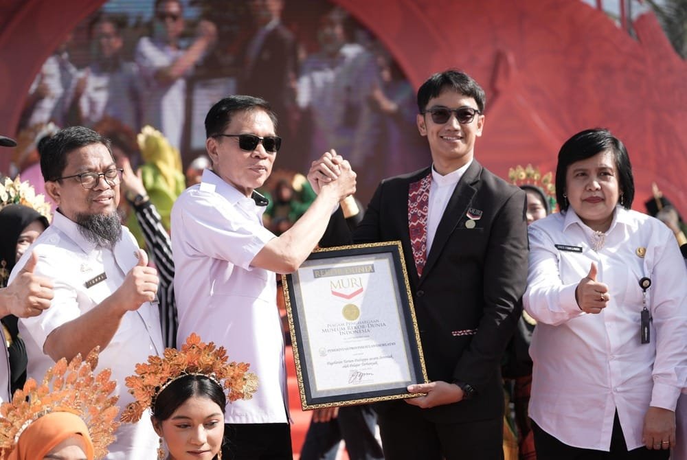 MAKASSAR, FOLDERINDONESIA.COM Dua rekor MURI berhasil diraih Pemerintah Provinsi Sulawesi Selatan pada Festival Sulsel Menari, yang dilaksanakan di Lego-lego, Center Point of Indonesia (CPI) Makassar, Rabu, 12 Juni 2024. Dimana, 24.913 pelajar secara serentak di 24 kabupaten kota menarikan Tari Paddupa, mengenakan baju bodo, baju adat khas Sulawesi Selatan.