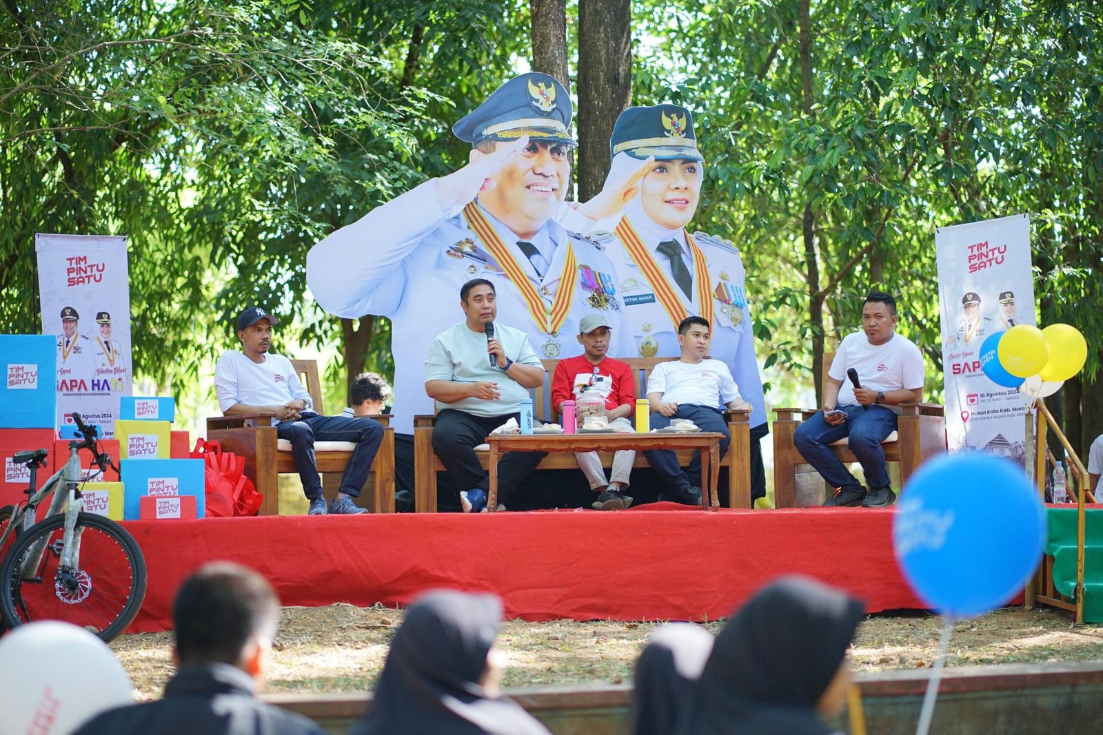 MAROS, FOLDERINDONESIA.COM –Memperingati hari kemerdekaan Republik Indonesia, komunitas yang tergabung dalam Tim Pintu Satu (TPS) melaksanakan giat Sharing Harapan Chaidir-Suhartina (SAPA HATI) di area terbuka Hutan Kota, Turikale, Maros, Sabtu (18/08/2024). Bupati Maros, Chaidir Syam turut hadir berbaur bersama masyarakat.