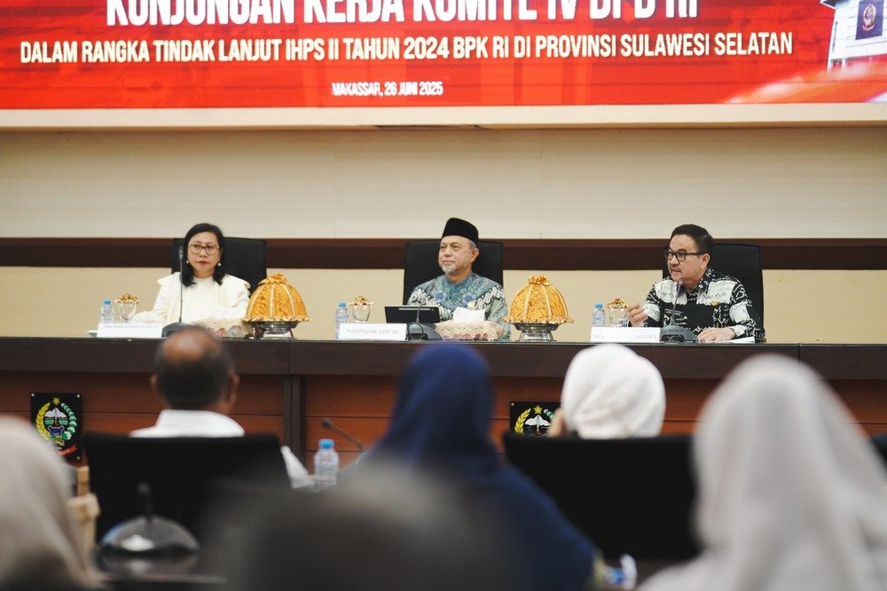 MAKASSAR, FOLDERINDONESIA.COMSekretaris Daerah Provinsi Sulawesi Selatan, Jufri Rahman, menerima kunjungan kerja Komite IV Dewan Perwakilan Daerah Republik Indonesia (DPD RI) di Kantor Gubernur Sulsel, Kamis, 26 Juni 2025.
